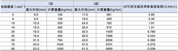 三、電纜規(guī)格及技術(shù)參數(shù)